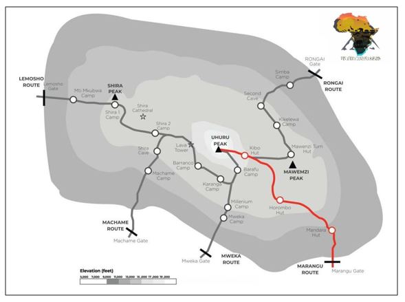 The minimum days required for this route is five, although the probability of successfully reaching the top in that time period is quite low. Spending an extra acclimatization day on the mountain is highly recommended when climbing Kilimanjaro using the Marangu route.